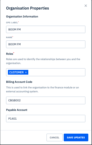 In Xero, each billing account must be set up as a Customer. The billing account code in CocoonOPS must also match the Account Number in Xero exactly. This is important, as it ensures invoices raised in CocoonOPS are assigned to the correct customer account in Xero.